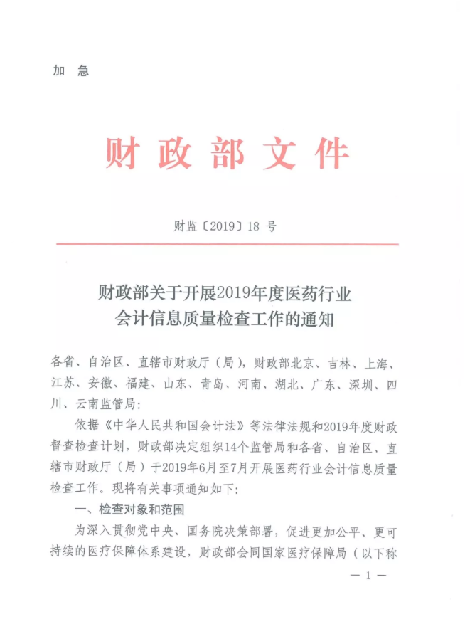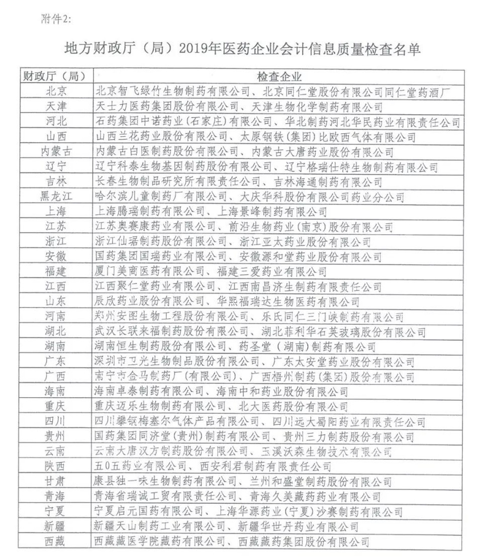 财监(2019)第18号加急文件显示,包括赛诺菲、施贵宝等国际知名药企和复星医药、恒瑞医药、步长制药、上海医药等A股多家上市药企都在该份检查名单中。
