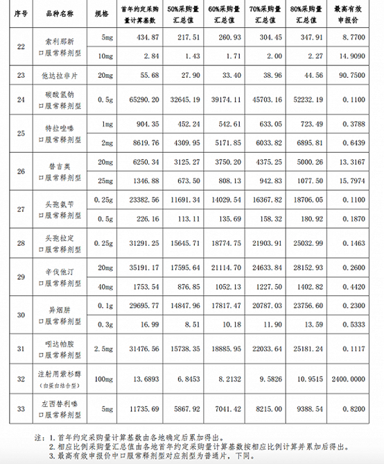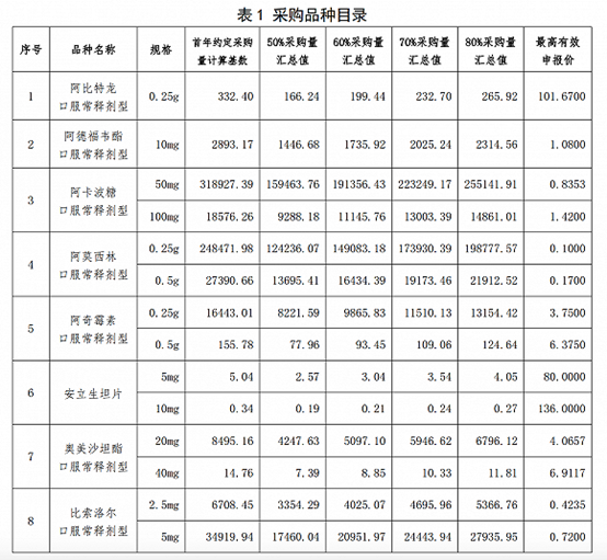 根据文件,采购品种涉及阿比特龙口服常释剂型等33个品种,与此前市场传闻的35个品种相比,少了两个,主要是二甲双呱缓释剂型和口服常释剂型两个品种被调出了。可申报品种依然为已通过一致性评价及参比制剂,或是按照按化学药品新注册分类批准的仿制药品、纳入《中国上市药品目录集》的药品。