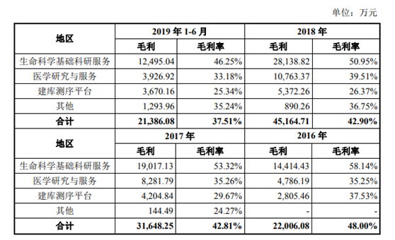 由于壁垒不高,买机器试剂就可以开展业务,所以面临充分竞争,既包括大型企业,也包括很多创业公司,甚至大学与科研机构的机器干私活,因此没有提价能力,市场价格不断下跌,毛利率持续下滑,显然与高科技的概念背道而驰。