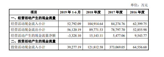 报告期内,诺禾致源经营活动产生的现金流量净额分别为1.43亿元、9543.77万元、5477.06万元、1.51亿元、-3328.10万元,2019年上半年末,公司经营性现金流净额为负。