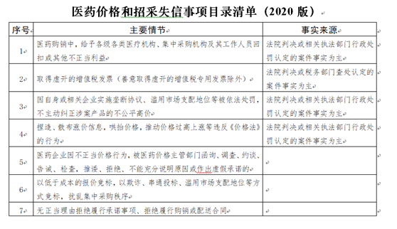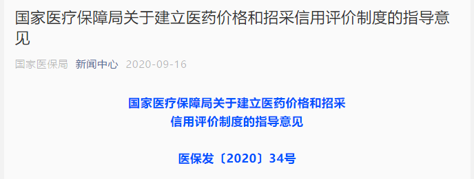 9月16日,国家医疗保障局网站发布《国家医疗保障局关于建立医药价格和招采信用评价制度的指导意见》,要求各省级医疗保障部门应在2020年底前,指导监督本省份集中采购机构建立,并实施医药价格和招采信用评价制度。《意见》明确,医药价格和招采信用评价制度不同于传统上基于行政管理关系的信用监管,是基于药品和医用耗材集中采购的买卖合同关系,在医药企业出现给予回扣等违反公平合理、诚实信用定价行为时,由药品和医用耗材集中采购机构按照信用承诺采取措施,维护采购方和消费方的合法权益。《意见》提出,一是目录清单。将给予回扣等有悖诚实信用的行为纳入评价范围。二是企业承诺。要求参加药品和医用耗材集中采购的医药企业作出守信承诺。三是信息记录。采取企业报告与平台记录相结合的方式掌握医药企业失信信息。四是信用评级。依据法院判决或行政处罚认定的案件事实,确定失信等级,动态更新。五是分级处置。分级采取提醒告诫、提示风险、限制或中止投标挂网、公开披露失信信息等处置措施。六是信用修复。鼓励企业整改,采取切实措施主动修复信用。国家医疗保障局建立医药价格和招采失信事项目录清单,那么究竟哪些行为要被纳入信用评价范围呢?文件《指导意见》明确以下几类:列入目录清单的失信事项主要包括:在医药购销中给予回扣或其他不正当利益、涉税违法、实施垄断行为、不正当价格行为、扰乱集中采购秩序、恶意违反合同约定等有悖诚实信用的行为。自本意见印发之日起,医药企业(含药品生产许可持有人、药品和医用耗材生产企业、与生产企业具有委托代理关系的经销企业,以及配送企业,下同)在定价、投标、履约、营销等过程中,通过目录清单所列失信事项牟取不正当利益的,纳入医药价格和招采信用评价范围。事实来源主要有法院的判决、税务部门查出认定案件事实以及相关执法部门行政处罚等。附件:医药价格和招采失信事项目录清单(2020版)1、医药企业应主动及时向失信行为发生地的省级集中采购机构报告失信信息。2、省级集中采购机构定期梳理汇总相关部门公开或共享的裁判文书、行政处罚决定文书等,采集校验医药企业失信信息并予以记录。省级集中采购机构日常运行中通过监测、受理举报等方式,掌握医药企业定价、投标、履约、营销等方面的失信行为信息并予以记录。分级处置失信违约行为。省级集中采购机构根据医药企业信用评级,分别采取:失信行为涉及省份数量达到规定条件的,由国家医疗保障局医药价格和招标采购指导中心启动全国联合处置。涉事药品或医用耗材供给结构单一、供需形势紧张的,在保障供应的基础上采取分级处置措施。医药企业参加或委托参加药品和医用耗材集中采购、平台挂网,以及公立医疗机构和医保定点的非公立医疗机构开展的备案采购,应以独立法人名义向相关药品和医用耗材集中采购机构提交书面承诺,承诺事项包括建立合规审查制度,杜绝失信行为,规范其员工(含雇佣关系)或具有委托代理关系的经销企业销售己方药品或医用耗材的行为,承担相应的失信责任,接受处置措施等。建立医药企业信用修复机制。失信行为自被确认起超过一定时间,以及相关司法判决、行政处罚决定被依法撤销或改变的,保留记录但不再计入信用评级范围。省级集中采购机构在处置措施生效前提醒告知医药企业,并视情形给予一定的申诉和整改期,允许企业补充更正信息、申诉说明情况。鼓励企业采取切实措施主动修复信用,包括终止相关失信行为、处置失信责任人、提交合规整改报告并接受合规检查、公开发布致歉声明消除不良影响、剔除涉案药品或医用耗材价格中的虚高空间、退回或公益性捐赠不合理收益、有效指证失信行为的实际控制主体等。关于建立药品价格和招采信用评价制度,正在从政策层面,逐步落实到具体实施与执行层面。根据药企的信用等级采取分级惩戒制度,并且失信行为与集采、挂网、招标挂钩。这些制度对与有商业贿赂历史与不良记录的企业杀伤力巨大!监管部门共享、交叉校验药企失信行为,让回扣营销、不当利益输送无处可逃!