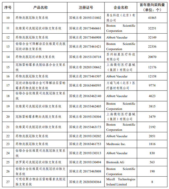 10月16日,天津市医药采购中心发布《国家组织冠脉支架集中带量采购文件》。集采文件最终确定,首批国家集中带量采购的冠脉支架品种首年意向采购量超过107万个,涉及27个产品,金额超123亿元,占据心脏支架市场规模80%。