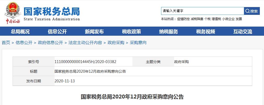 11月13日国家税务总局发布2020年12月政府采购意向公告,此次采购项目系金税四期决策指挥端之指挥台及配套功能建设项目,预算金额195万。此次预计采购时间为2020年12月,采购项目要求实现金税四期决策指挥端之指挥台及配套功能系统,部署于税务总局内网。