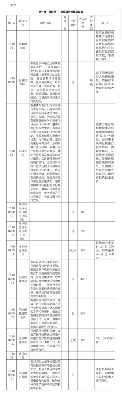 近日,浙江省医疗保障局、省卫生健康委公布了第一批“互联网+”医疗服务价格项目,适用范围为浙江省各级公立医疗机构。第一批“互联网+”医疗服务包括互联网诊疗、远程会诊、远程监测3类,试行期2年;同时,取消现行按特需医疗服务管理的“远程会诊”项目。各级公立医疗机构开展互联网复诊,由不同级别医务人员提供服务,均按线下普通门诊诊查费项目价格收费。各级公立医疗机构按不超过省医疗保障局公布的价格收取费用。患者接受“互联网+”医疗服务,按服务受邀方执行的项目价格付费。“互联网+”医疗服务涉及邀请方、受邀方及技术支持方等多个主体或涉及同一主体不同部门的,各方自行协商确定分配关系。邀请方应当根据患者的病情和意愿组织远程会诊服务,并向患者说明远程会诊服务内容、收费标准等情况,征得患者书面同意,签署远程会诊服务知情同意书,不得强行服务、强行收费。在单学科远程会诊方面,以副主任医师及主任医师为界,分为两档。副主任医师单学科远程会诊,180元/次,主任医生但学科会诊200元/次。在多学科远程会诊方面,浙江省定价为200元/科/次,每增加一个学科加收200元,加收最多不超过400元。新冠疫情期间,互联网+医疗迎来高规格的密集“新政”。近一年来,国家卫生健康委员会、国家医疗保障局连续下发多个文件,直指互联网+医疗“最后一公里”的问题。
