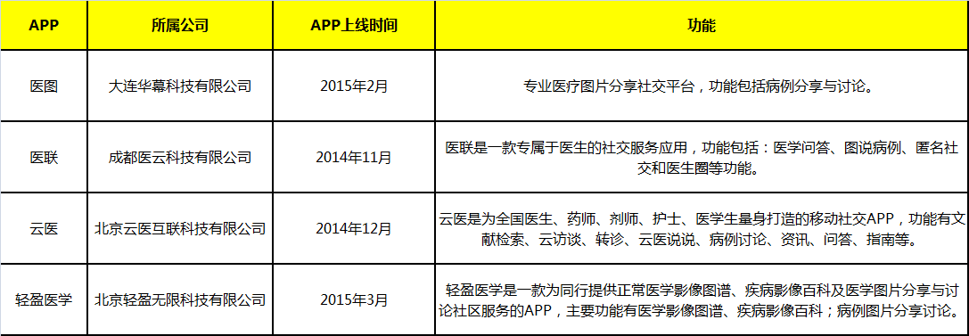 四款以病例图片分享为中心的APP,在核心功能上有交叉,产品上线时间也基本相同,相对医联、云医、轻盈医学等同类以医疗图片分享为中心的APP,医图和医联大方向基本相同,但医图更轻更像Figure 1,医联更偏医生领域的实名社交和病例分享,云医想未来偏向医患领域,轻盈医学则是自己制作了很多图谱并加入了其他功能,利用APP的工具性来吸引用户,不过殊途同归,就看最后谁能做成而已。
