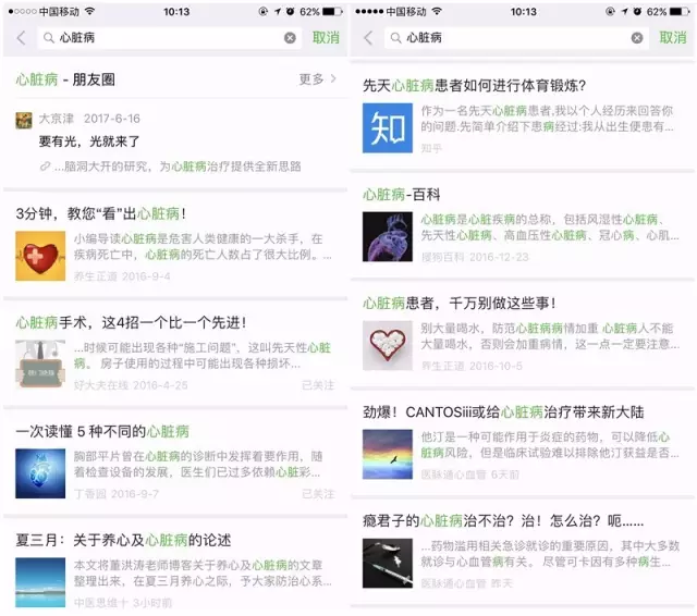 微信作为中国最大的移动社交平台有数亿用户流量,还拥有众多公众平台的入驻,因此他有天然的医疗搜索基础。