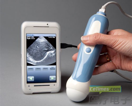 上图所示的产品是世界首个智能手机超声成像系统Mobisante,名为MobiUS