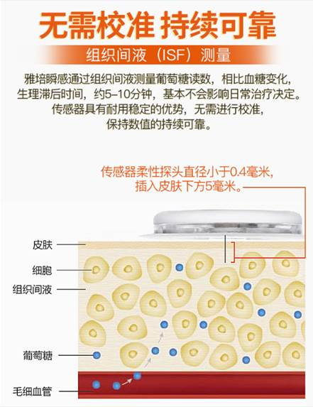 我们可以看出,这套设备并没有“芯片”,而是贴在皮肤表面的传感器有一个探头会插入皮肤5mm。设备只能测血糖,如果据此再推测一下酮体,参考一下代谢的情况是可以的,但并不能够检测其他“很多跟血液里的成分相关”之类的东西,这也侧面了说明隔行如隔山,即使是互联网老总们,医疗知识也是极为有限,甚至充满YY!