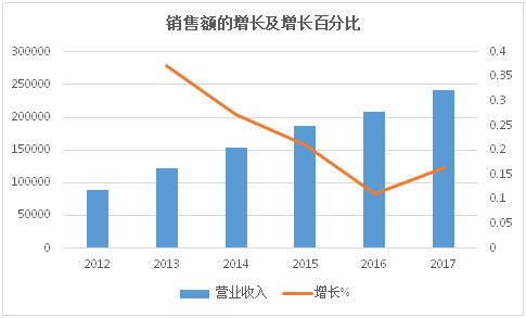 万达信息2017年的销售收入较2016年同比增长16%, 纵观过去数年, 万达信息的营业收入年年增长, 但增长的比例则逐年下调, 这也符合企业成长的规律。