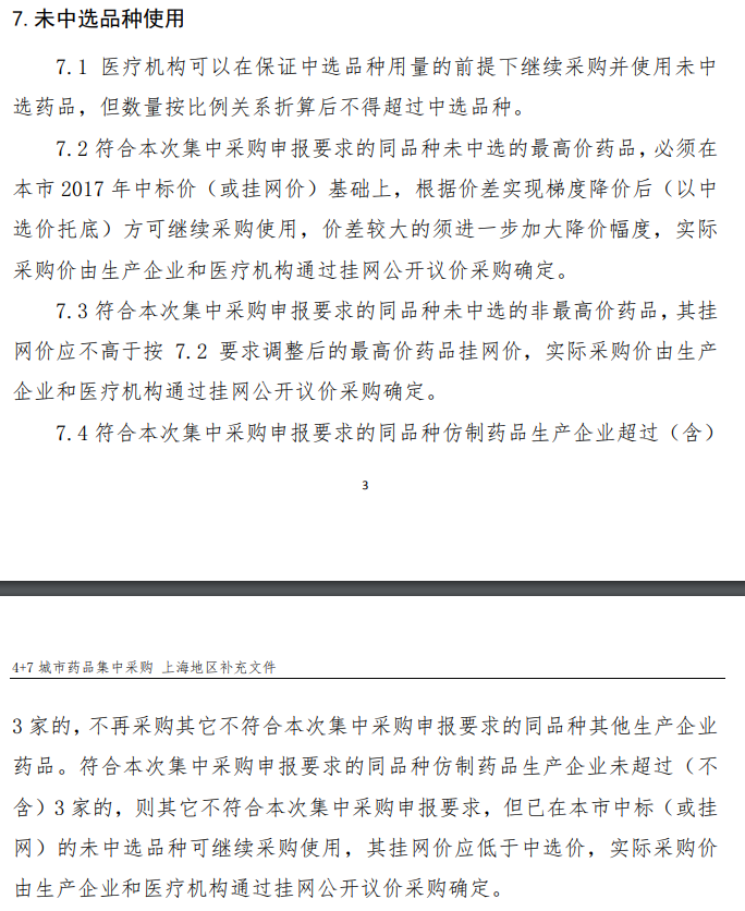 7.4符合本次集中采购申报要求的同品种仿制药品生产企业超过(含)3家的,不再采购其它不符合本次集中采购申报要求的同品种其他生产企业药品。