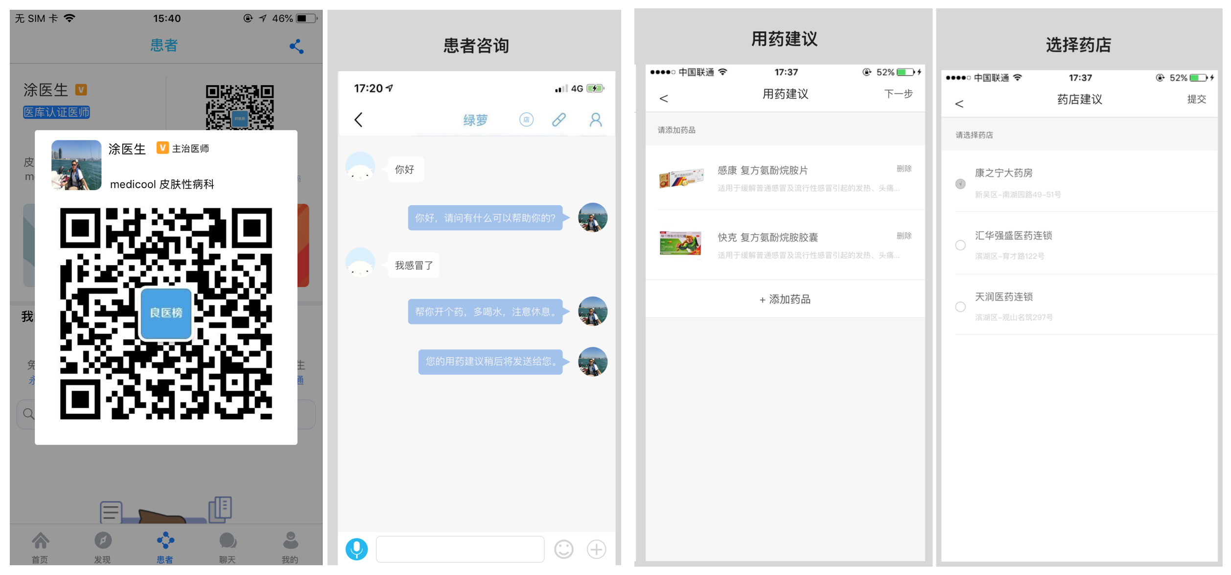 场景二,患者在线下药店的时候有一些医学咨询与服务的需求,药店可以推荐与其长期合作的医生,并且对药店会员免费或者优惠打折进行长期服务,随后进入扫码和沟通流程,服务在线上,购买在线下,帮助药店更好地留住客户!