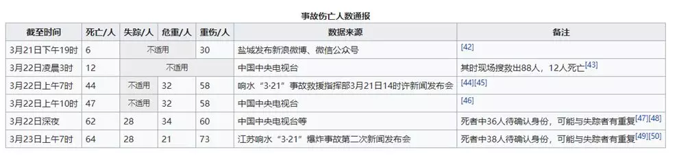2019年3月21日,中国江苏省盐城市响水县江苏天嘉宜化工有限公司工厂厂区内发生爆炸事故。