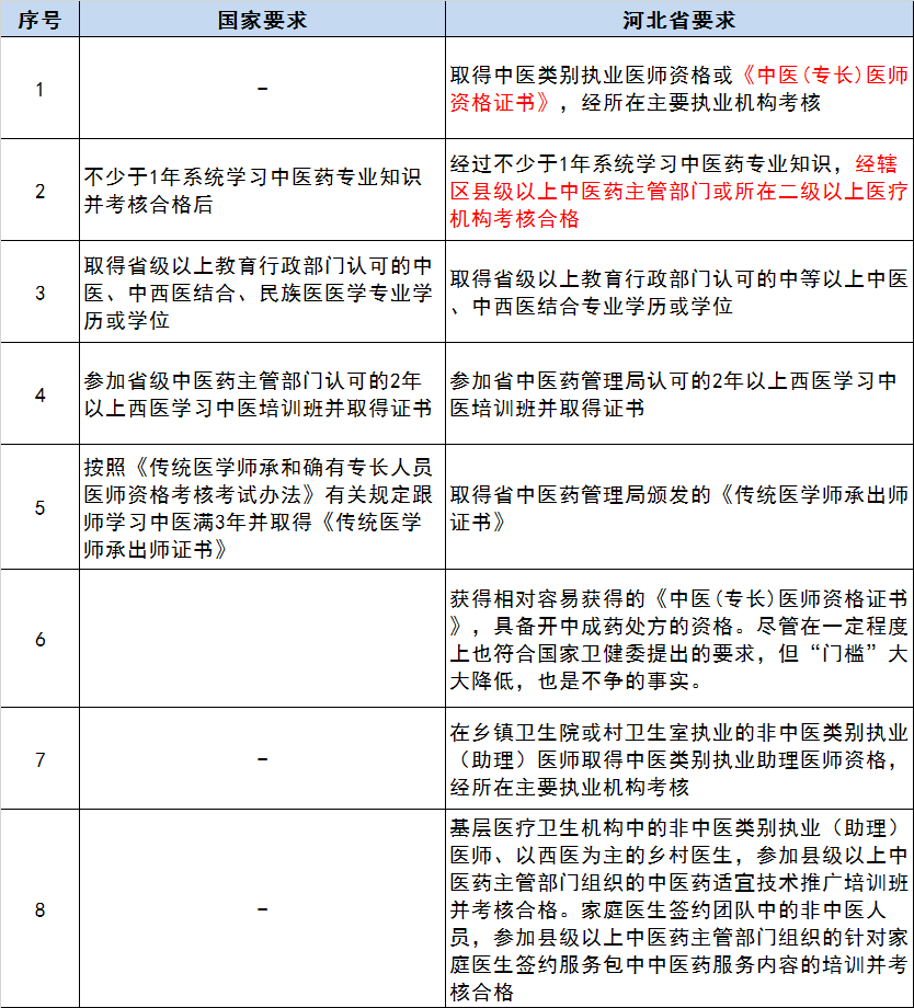 2. 河北省增加了村医和家庭医生的资质要求——参加县级以上中医药主管部门组织培训并考核合格。