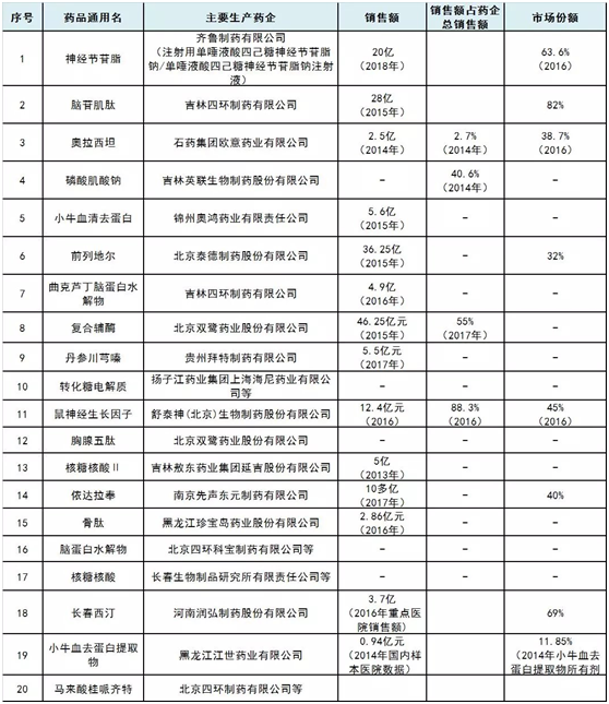 其中包括了,2019年7月1日,卫健委公布首批国家重点监控合理用药药品目录,包括小牛血清去蛋白、鼠神经生长因子、长春西汀、核糖核酸等在内的20个药品被重点监控,都被踢出医保目录。