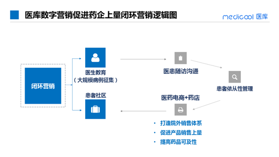 医库将协助药企,通过医生教育和患者社区的患者依从性管理,从医患两端同时构建药品全渠道闭环营销的护城河,不仅贯穿院内院外全渠道,还将推动药企市场部的学术职能和品牌建设,促进销售推广和潜力挖掘,最终达到直接推动药品销量增长的目的,还可以有效避免传统营销线下带金销售、临床造假等不合规的行为。