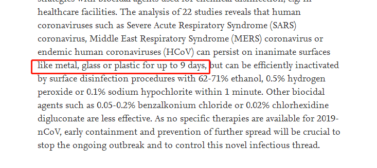 国外最新研究表明:新冠病毒可以在无生命的物体上存活9天!