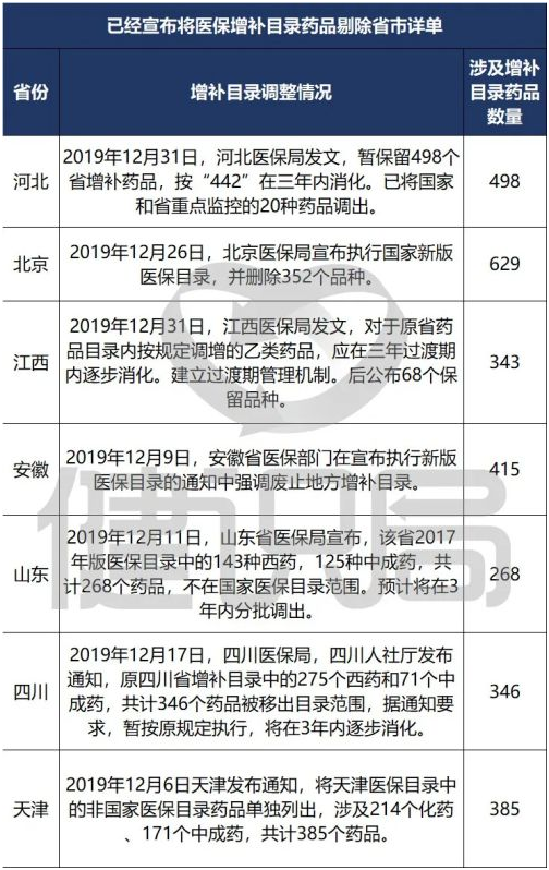 去年8月,医保发〔2019〕46号 文件下发,在“明确地方权限”一项提到:各地应严格执行《药品目录》,不得自行制定目录或用变通的方法增加目录内药品,也不得自行调整目录内药品的限定支付范围。对于原省级药品目录内按规定调增的乙类药品,应在3年内逐步消化。消化过程中,各省应优先将纳入国家重点监控范围的药品调整出支付范围。那么,重点监控的药品,什么时候调出支付范围,最后期限?近日,一份名为《2020年医药服务管理工作要点》在业界流传,给出确切时限:关于医保目录管理方面,工作要点提出,要尽快制定增补品种的3年消化方案,于今年6月底前将国家重点监控品种剔除出目录并完成40%省增补品种的消化。1、定了,重点监控品种剔除的最后期限6月底!那么,20个重点监控药品有哪些?2019年7月1日,卫健委公布首批国家重点监控合理用药药品目录,从遴选出来的第一批20种重点监控药品看,也基本上囊括了近年来临床使用的具有类似“神药”特点的药品。这20种药品是神经节苷脂、脑苷肌肽、奥拉西坦、磷酸肌酸钠、小牛血清去蛋白、前列地尔、曲克芦丁脑蛋白水解物、复合辅酶、丹参川芎嗪、转化糖电解质、鼠神经生长因子、胸腺五肽、核糖核酸Ⅱ、依达拉奉、骨肽、脑蛋白水解物、核糖核酸、长春西汀、小牛血去蛋白提取物、马来酸桂哌齐特。虽然这20个重点监控药品只有5个在2017版《医保目录》中,但是由于之前各地可以自行制定或者变通新增目录,其余15个品种则是地方《医保目录》增补产品。而现在国家医保局明确要求,各地应严格执行《药品目录》,不得自行制定目录或用变通的方法增加目录内药品,也不得自行调整目录内药品的限定支付范围。可见,20个药重点监控药品被明确剔除,而且地方也没有增补权限,建立防范“神药”再次进入医保目录的长效机制。这20个药品此次被全部调出,预计将会给市场、药企、病患者带来影响。从调出的品种看,有一些是年销售量比较大的品种,比如复合辅酶、脑苷肌肽,销售额高达三四十亿。这20个重点监控药品中,部分品种为企业独家品种,如注射用复合辅酶、小牛血清去蛋白注射液和曲克芦丁脑蛋白水解物注射液,分别为双鹭药业、复星药业锦州奥鸿药业有限责任公司、吉林四环制药有限公司的独家品种。还有部分涉及不少大药企,如转化糖电解质注射液的主要生产方之一为扬子江药业,注射用鼠神经生长因子的生产企业中有丽珠制药厂,奥拉西坦为石药集团欧意药业,伊达拉奉注射液为南京先声东元药业。2019年9月26-27日国家医保局在武汉举办的医药服务管理培训会上,明确要求三年内按各省增补数量的40%、40%、20%的节奏调出。而且,近日《2020年医药服务管理工作要点》中,给出确切时限:关于医保目录管理方面,要尽快制定增补品种的3年消化方案,于今年6月底前将国家重点监控品种剔除出目录并完成40%省增补品种的消化。由此看来,今年内地方增补品种要清理40%的比例是大势所趋。各省市出手,近千药品已被踢出医保目录。江西省医保局已建立《江西省过渡期保留药品目录》,包括超出《国家新版目录》的22个西药和46个中成药,保留期限分别到2020年12月31日和2022年6月30日,到期后直接移出医保目录。截至目前,江西、山东、北京、湖南、四川、广东、天津、浙江等多地已相继发文,开展省级目录与新版国家医保目录的对接工作。其中很重要的一点,就是调出地方增补品种。受此次疫情影响,医保基金压力加大,必然要加快并且更加彻底地把“神药”清除出医保目录,为医保资源腾出足够的空间。总之,过去一大批“神药”依靠进入医保目录,就可以在市场上大行其道的好日子已经一去不复返。