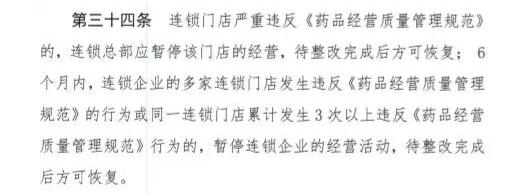 国家药监局监管司起草的一份《药品零售连锁管理指南(征求意见稿)》文件在业内流传,文件共分7章共38条,对连锁药店的多项制度进行了详细而具体的规定,明确了总部和门店的关系,门店在采购、运输、储存渠道上依附于连锁总部,连锁企业对门店的违规行为负连带责任。《征求意见稿》明确,药品零售连锁企业(简称“连锁企业”)是由连锁总部、配送中心(仓库)和10家以上药品零售连锁门店(简称“连锁门店”)构成,三者是一个完整的有机整体。既然三者是一体的,那么一旦零售连锁门店犯事,不仅是单个门店自己的事,情况大了,可能还会波及连锁总部。《征求意见稿》对连锁企业违反GSP的行为提出了严重的惩罚措施:(GSP是《药品经营质量管理规范》的英文缩写,是药品经营企业统一的质量管理准则。药品经营企业应在药品监督管理部门规定的时间内达到GSP要求,并通过认证取得认证证书。)连锁门店严重违反《药品经营质量管理规范》的,连锁总部应暂停该门店的经营,待整改完成后方可恢复;6个月内,连锁企业的多家连锁门店发生违反GSP的行为或同一连锁门店累计发生3次以上违反GSP行为的,暂停连锁企业的经营活动,待整改完成后方可恢复。连锁企业总部因违反《药品经营质量管理规范》等情形被责令整改、暂停销售期间,其各连锁门店可将配送中心(仓库)和连锁门店库存合格药品在药品有效期内销售完毕, 不得自行从其他药品批发企业(包括受托配送的药品批发企业) 购进药品。由此可见,国家药监局的监管思路向连坐制转变,一家门店的违规行为,将会波及到整个连锁企业的经营活动。不是单一的处罚特定门店和特定行为了。说白了,就是要让连锁企业加强对门店的管理。这不仅适用于新开或并购门店,还适用于加盟进来的药店。这与近日的国家医保局建立药品价格和招采信用评价制度有异曲同工之处,在建立守信承诺制度中要求,药企要承诺对于委托服务企业、代理企业为己方药品实施的商业贿赂、操纵市场等违法违规行为,承担连带责任,一旦有不合规、商业贿赂行为,不能再甩锅经销商了。