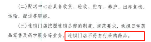 连锁总部是连锁企业经营管理的核心,负责药品采购、配送及质量与安全控制,以及对连锁门店的统一管理。连锁门店按照连锁总部的制度、规范要求,承担日常药品零售及药学服务等业务。连锁门店不得自行采购药品。也就是说,届时加盟店在采购、运输、储存渠道上,完全要依附于连锁总部。连锁门店是连锁企业的药品销售网络终端,只承担日常药品零售也药学服务业务。
