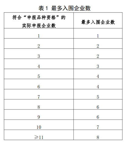 在中选规则方面,由于部分品种竞争激烈,此次集采将允许至多8家企业中选。相对于第2批集采的至多6家中选有所增加。除此之外,第三轮集采在价格方面的规定与第二轮集采基本相同,采取1.8倍熔断机制和降价50%的规则。“采购品种目录中同品种最多入围企业数根据符合“申报品种资格”的实际申报企业数确定,最多入围企业数增加到了8家。“具体见下表 :