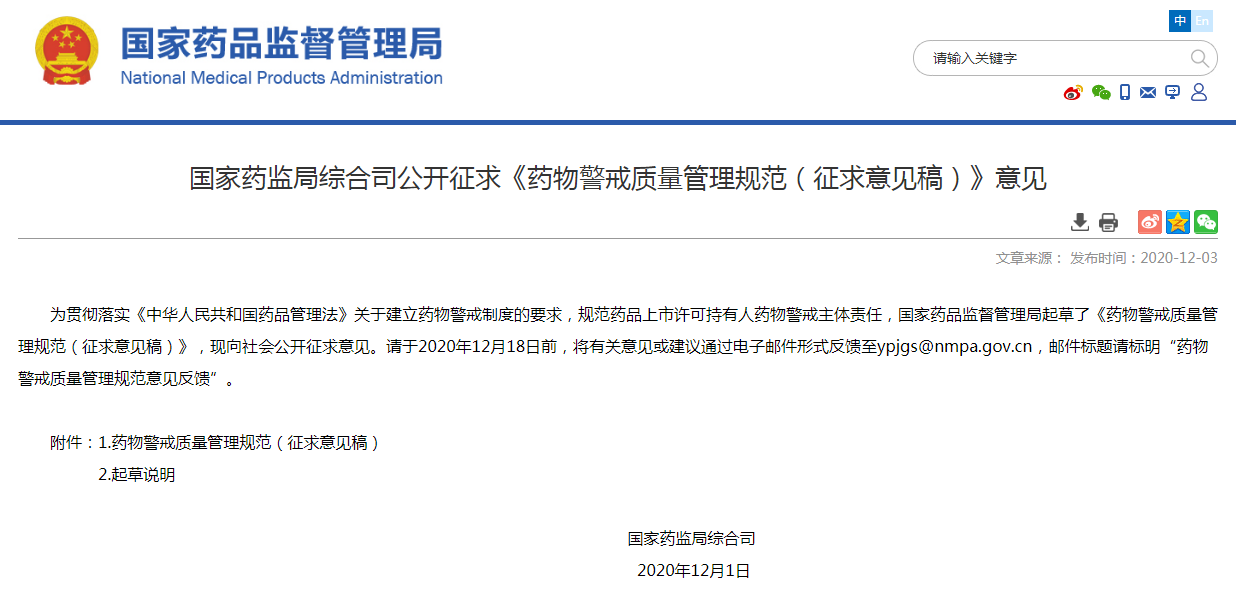 12月3日,国家药监局综合司发布《药物警戒质量管理规范(征求意见稿)》(下称“规范”),并公开征求意见。本规范共九章一百三十七条。除第一章总则和第八章外,其他章节均是对药品上市后持有人药物警戒活动的规定。本规范起草的总原则是:以新药管法为依据,全面落实持有人药物警戒主体责任,规范警戒活动并提高质量;以新形势为契机,接轨国际成熟经验和ICH相关要求,促进制药企业国际化发展;以国情为出发点,兼顾制药行业不均衡发展现状,稳步推进药物警戒制度落实。药物警戒是指对药品不良反应及其他与用药有关的有害反应进行监测、识别、评估和控制,是药品不良反应监测的拓展和升级。从2018年的《国家药品监督管理局关于药品上市许可持有人直接报告不良反应事宜的公告(2018年第66号)》出台以来,到《国家药监局关于发布个例药品不良反应收集和报告指导原则的通告(2018年第131号)》,再到2020年的《药品管理法》颁布,文件内容一直有提及药物警戒的内容。新修订的《药品管理法》首次从国家立法角度提出建立药物警戒制度,与药品追溯制度、药品上市许可持有人制度等共同构成我国药品管理的基本制度。12月3日, 国家药监局综合司发布《药物警戒质量管理规范》(征求意见稿)(英文简称GVP),我国药物警戒制度即将进入落地实施阶段。本规范是我国实施药物警戒制度和落实持有人药物警戒主体责任的新规定,与以往药品不良反应报告制度相对,对持有人提出了以下新要求:2018年66号公告借鉴欧盟药物警戒体系和药物警戒受权人(QPPV)的概念,提出了药品不良反应监测体系的建设要求,并要求持有人配备药品不良反应监测负责人。本规范延续了这一要求,更名为“药物警戒体系”和“药物警戒负责人”,并对持有人建立什么样的药物警戒体系、配备符合什么条件的药物警戒负责人进行了具体诠释。同时借鉴欧盟经验,要求持有人制定“药物警戒体系主文件”,对其警戒体系,包括机构、人员、制度、资源等进行全面描述,一方面有利于持有人整体规划自身体系建设,另一方面也方便监管部门开展药物警戒检查。为转化实施ICH相关指导原则,2018年66号公告对上市后药品不良反应报告范围和时限要求等进行了调整。本规范延续了相关要求,与81号令相比,不良反应报告范围从药品固有的属性,即合格药品正常用法用量下的不良反应,扩大到药品不良反应及其他有害反应,包括可能与药品质量相关或超说明书用药情况下发生的有害反应。报告时限也与ICH的指导原则基本一致。对于ICH指导原则的其他技术要求也在本规范中进行了体现。ICH指导原则要求上市前申办者提交“研发期间安全性更新报告”(ICHE2F),上市后持有人提交“定期安全性更新报告”(ICHE2C-R1)或“定期获益风险评估报告”(ICHE2C-R2)。2020年7月国家药监局先后发布了适用ICHE2F和E2C-R2的相关公告,本规范对申办者和持有人提出了与ICH指导原则一致性的要求。对于上市后,持有人除了可以按81号令提交定期安全性更新报告(PSUR)外,还规定可以提交“定期获益风险评估报告”(PBRER),因此,对风险的评估也从单纯的安全性评估过渡到了获益风险综合评估。根据药管法关于持有人开展上市后研究的要求,本规范提出了持有人开展上市后安全性研究的新要求,明确了上市后安全性研究的范围、类型、发起、目的和方法等。但具体的技术要求仅进行了原则性规定,有待后期制定更加细化的技术指南。风险识别是药物警戒的关键组成部分,也是我国现行法规和技术指南中的薄弱环节。信号检测是风险识别的一种手段。本规范为提高持有人风险识别的能力,借鉴CIOMS技术要求和欧盟的经验,首次提出了信号检测的概念,并对信号检测的频率、方法和相关要求进行了原则性规定,为持有人拓展药物警戒工作的内容提供了依据,也为今后出台相关技术指导原则奠定了基础。药管法规定持有人应制定上市后药品风险管理计划。本规范借鉴ICH关于药物警戒计划的表述,并指出药物警戒计划是药品上市后风险管理计划的一部分,其包括药物警戒计划制定的情形、内容要求、提交要求等。有关药物警戒计划的撰写规范还需要另行制定相关指南。此外,本规范还重点突出了风险沟通的要求,明确了风险沟通的对象、原则、方式和内容,借鉴欧盟和美国提出了“致医务人员函”和“患者安全用药指南”新沟通方式,并结合我国国情提出了新的要求。结合药品审评审批制度改革对创新药审批的改革趋势,对创新药监测提出了新要求。借鉴欧盟关于药物警戒的要求,提出了加强监测制度,要求创新药根据药品安全性特征,通过在药品说明书、包装、标签中进行标识等方式,强化不良反应报告意识。此外为体现中药管理特色,指出中药、民族药持有人应根据中医药、民族医药相关理论,分析药物自身(如毒性成分等)、临床使用(如证候、配伍、炮制、剂量与疗程等)、患者机体状态等影响因素。与药品生产相似,持有人制度下药物警戒也会产生委托。药物警戒本身是一项技术性很强的工作,持有人将部分药物警戒工作委托出去(如通过商业渠道收集不良反应、通过学术机构开展文献检索),一方面可以节省自身的人力和时间成本,另一方面也是能力较弱的企业现阶段确保其药物警戒水平的有效途径。本规范对药物警戒的委托管理进行了原