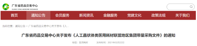 2月22日,广东省药品交易中心最新发布了一则关于开展《人工晶状体类医用耗材联盟地区集团带量采购文件》的通知(以下简称《通知》)。《通知》中,广东省药品交易中心表示,将联合江西、河南省联盟地区的各类医疗机构开展人工晶状体类医用耗材联盟带量采购。文件的发布也就意味着,广东、江西、河南省三省耗材带量采购联盟正式成立,人工晶体类耗材将再度迎来大杀价。去年11月,在江苏,此前江苏就已成立由全省157家三级公立医疗机构组成的省阳光采购联盟,先后开展三轮组团联盟集中采购。采购涉及了心脏支架、冠脉球囊、初次置换人工膝关节等6大类品种、数千个品规,平均降幅均在50%以上,最高降幅达86.4%。云南省医保局称,已经先后开展10批次药品医用耗材集中带量采购,中选价格最高降幅达98.38%,平均降价60%左右,预计云南省每年节约采购资金23亿元,有效减轻群众看病就医费用负担。1月29日,根据国务院官网消息,国家医疗保障局副局长陈金甫公布医用耗材带量采购的下一步部署:依然会选择成熟的产品、有竞争性的产品、有质量管控的产品,采取一品一策的方式,优化竞选规则,逐步在医用耗材领域拓展。春节之后,国家医保局高层密集到地方调研药品和耗材带量采购落地情况2月22至23日,胡静林赴四川开展调研,实地考察了华西医院、华西口腔医院、四川省骨科医院关于骨科和口腔科医用耗材的采购、管理和使用情况。并就深入开展高值医药耗材集中带量采购听取了四川、江苏、内蒙古、天津等省(区、市)的思路,以及医疗机构的意见建议。2月25至26日,国家医疗保障局副局长陈金甫调研了天津市医疗器械质量检验中心、正天医疗器械有限公司,了解骨科耗材生产流通情况,听取企业意见建议。陈金甫在天津主持召开专题研讨会,听取冠脉支架集中带量采购落地情况,研究下一批医用耗材集中采购工作。与药品集采一样,医疗器械的集采也是为了压缩产品流通中费用,达到医保控费、促进医疗改革的目的。伴随着高值耗材集中采购行动的开展,医用耗材企业高毛利时代即将结束,医用耗材行业生态将面临重构,这将促使行业本身向具有规模优势、技术成熟、创新能力强的头部企业加速集中。现在耗材集采只是刚刚开始,未来集采趋势必然在医械领域加速推进。集采常态化下,耗材价格也将持续受到挤压,必然会给行业带来翻天覆地的改变。