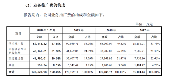 上次我们提到了倍特药业上市材料中的一些古怪的地方,很多人也给Dr.2发来了信息,说券商审计也很难,整个行业都是如此啊!那么我们接着分析:倍特药业在招股书中承诺,报告期内公司的推广服务商不存在仅为公司提供推广服务的情形,并非专为公司营销服务设立。推广服务商与公司结算推广服务费时均提供了其工作内容的证明材料,不存在费用过账情形。但是,实际情况与选取标准和承诺相反,倍特药业的推广服务商存在较多的疑点。倍特药业为何会出现这么多临时成立并快速注销的推广服务商?这些服务商是否专门为“走账”而存在?推广费的最终去向哪里?是否存在商业贿赂等问题?……报告期内,公司业务推广费分别为35,104.43万元(2017年)、127,483.72万元(2018年)、170,769.12(2019年)万元和137,523.98(2020年1-9月)万元,占营业收入的比例分别为31.19%、50.37%、52.77%和55.30%,占比持续提高。