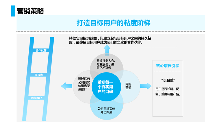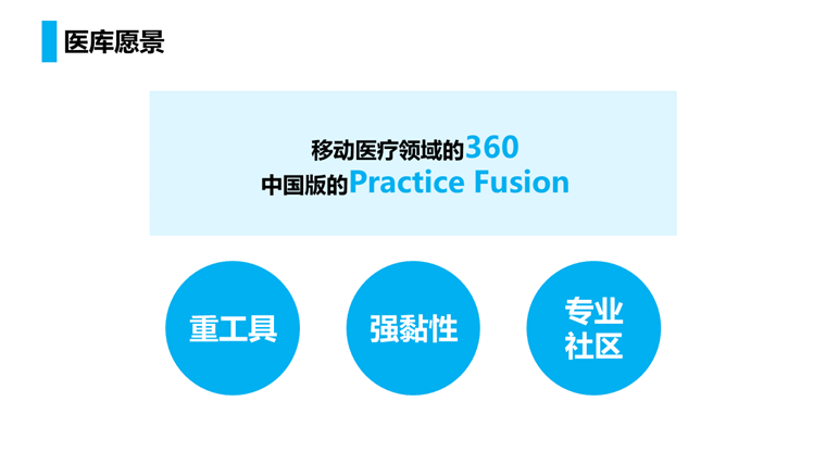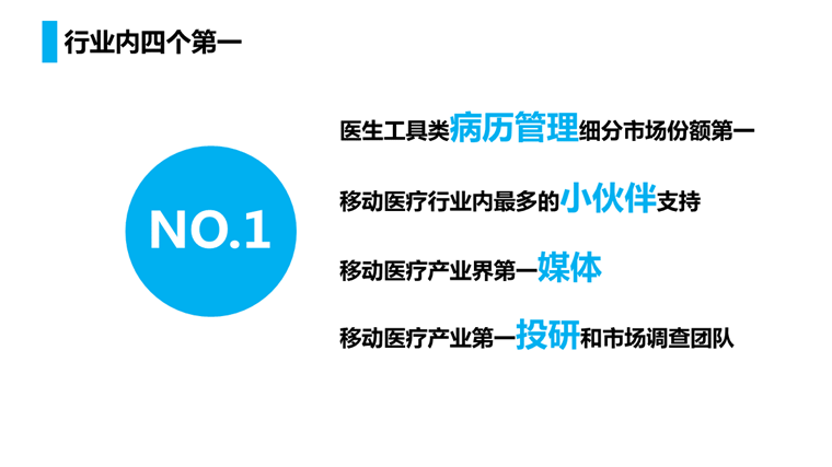 另外我们做医生平台,爱爱医和医脉通也是,为什么我们也能和他们合作呢?因为我们有一个共同的对手丁香园,他太强了,所以敌人的敌人就是朋友,你们懂的!
