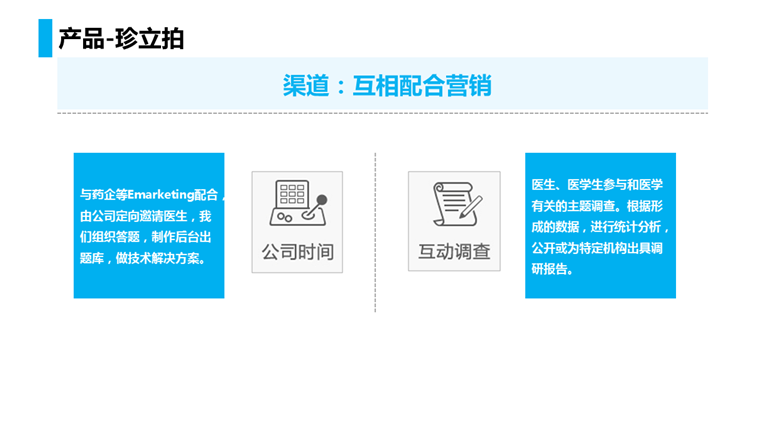 在已经在为药企做整合营销,珍立拍还是一个渠道,做E-MARKETING,同时我们有完整的传媒全产业链,包括视频制作,动画片,原创音乐,自己的录音