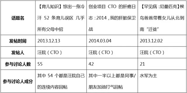 成立近一年半,满打满算社区才有715个讨论,1062个病经分享(虚假病经为主),平均每天2个。除去项目上线初期的活跃和团队自己发布的,项目中后期真实数据已经基本为零。看处方热门话题区共28页,不完全统计共有220个左右的话题。下表数据采集于2014年8月,但是2015年1月重新采集数据发现基本无变化。