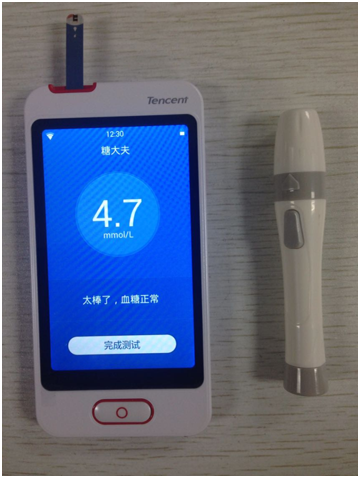 就是“掌控糖尿病”,即福州康为联合腾讯发布,由某第三方厂商代工的智能微信血糖仪。2015年1月20日推出,目前已开始预售,1月27日开始发