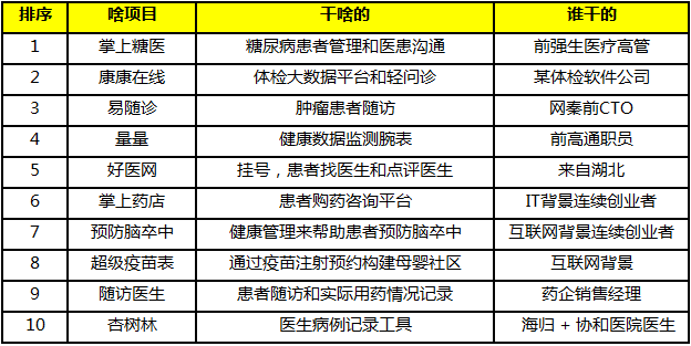 辉瑞挑选决赛项目算是行家眼光,基本覆盖医患、挂号、医生工具、慢病管理、健康管理、医药电商等移动医疗热门分类。糖尿病市场大需求强,自然是移动医疗的