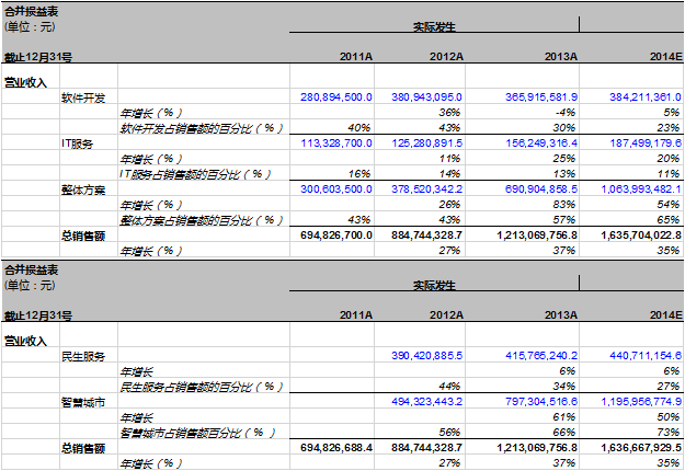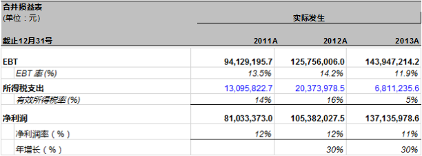 这样,我们就分析完万达信息过去三年的利润,现在我们该基于此分析对万达信息2014年的业绩进行预测。