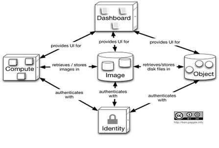 如图所示,OpenStack 的核心组件包括: