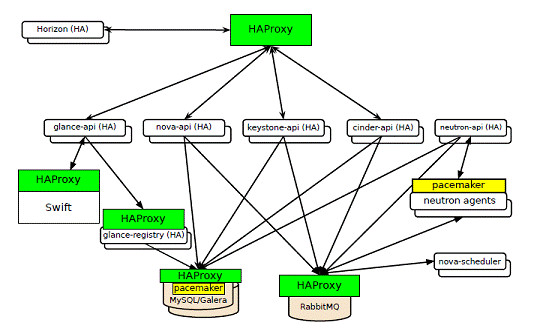 ·OpenStack API服务,例如nova-api,glance-api, nova-api用HAProxy和pacemaker实现。