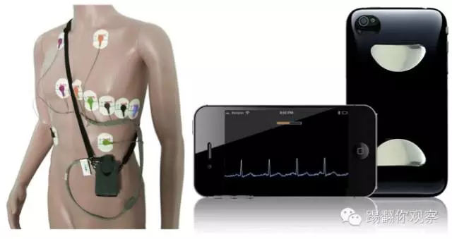 相对于传统的心电信号连续采集仪器,Alivecor的设计显得非常轻巧。下图中,左边是传统的,依旧在临床上应用的12导联心电监视仪,右边是Alivecor近年研发的1导联心电监视手机壳。但是Every benefit comes with a price。轻巧的Alivecor设计也局限了信号采集点的数目。多个信号采集点有两大意义:
