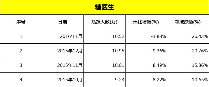 编者按:深夜忽然接到了匿名为“唐太宗”同学的投稿,根据内容猜测,很有可能是业内人士所写,虽然数据来自易观,但是相对值还算有理有据,也能自圆其说,也就发表出来吧,不过最近观察微糖融资后投放厉害,现在拉新和活跃度在快速上升,居然连百度网盟这么高成本的渠道都在砸钱,甭管如何,流量大幅度压制top5以下的应用,可见在糖尿病app这一细分领域也要进入决战了!one more还有一个“甜蜜家园”及“甜蜜糖尿病”app,不要忽视哦,他的数据也可以进top3哦,有机会再披露!