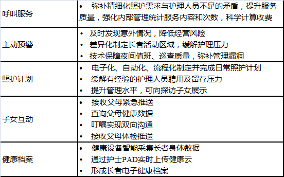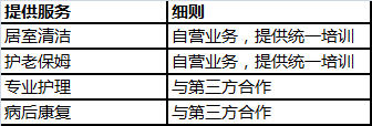 · 重点输出互联网技术、护理员培训和管理;打造“重点科室”,提升对半自理、不能自理的慢性病或康复者的服务能力