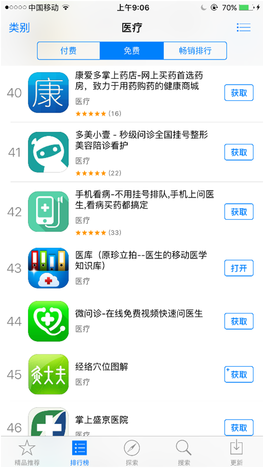 另外我这两年一直都再用别的IM应用,有重要事情想找我的自然能够找到,首选易信,账号是medicool,我们所有的员工和重要业务联系人都在里面。次选QQ,账号是526993491,用户名浪琴海,还对应着QQ邮箱。三选医库app,账号guhuozai,昵称也是人生如梦的Dr.2,几百个用户及一些合作伙伴在里面交流,去各市场搜索“医库”或者“珍立拍”即可(见下,今早appstore刚截图,昨日新增注册激活用户946)。以上三个是我每天必看必复的。四选微信:账号medicool2,这其实是我第三个微信,倒不是要特意留给什么重要人,而是我第一个微信5040人(上限),第二个微信也4000多了。