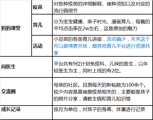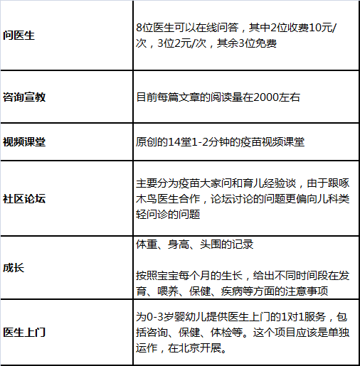 创始人熊水柔的花名为鸟叔,是一位北大本科的连续创业者,两个孩子的父亲。超级疫苗表设立始于2013年下半年,是最早上线的疫苗管理类APP,也是最早开始提供线下机构分时预约服务。2014年超级疫苗表还获得了2014年十佳移动医疗APP、2015年辉瑞创新E疗大赛TOP10以及百度首届金熊掌TOP10的殊荣,起点很高。不过可惜的是,鸟叔没有抓住良好的发展势头,公司的治理和融资节奏出现问题,缺少强大的行业医疗资源,也没有往母婴环节容易变现的环节延伸,只能眼睁睁着小豆苗和疫苗宝迎头赶上。目前其在北京市场地位领先,在全国的布局能力较弱。