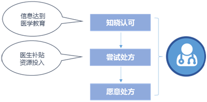 在医药市场竞争中,药企要提高销量就必须通过专业化的宣传,普及产品知识,让医生更多地了解自己的产品。在医生知道这个药品到使用这个药品中间有三个阶段:
