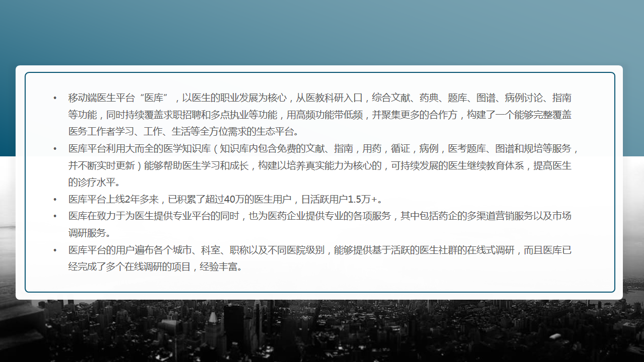 近年来,国家一直在大力推动健康产业发展和持续推进深化医改,在加快推进分级诊疗制度建设、巩固完善全民医保体系等重点任务的背景下,移动医疗行业正面临着新一轮的机会与挑战,下半场的战役也已悄然打响。