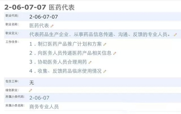 从严格意义来说,该意见有侵犯人权的嫌疑。医药代表是一份正式职业。《国家职业分类大典》中,医药代表的职业定义为代表药品生产企业从事药品信息传递、沟通、反馈的专业人员。其职业代码是"2-06-07-07",类别归属为专业技术人员-经济和金融专业人员-商务专业人员-医药代表。