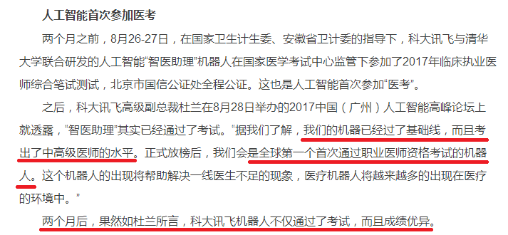 为什么我认为科大讯飞机器人通过执医考试,跟人工智能没什么关系?