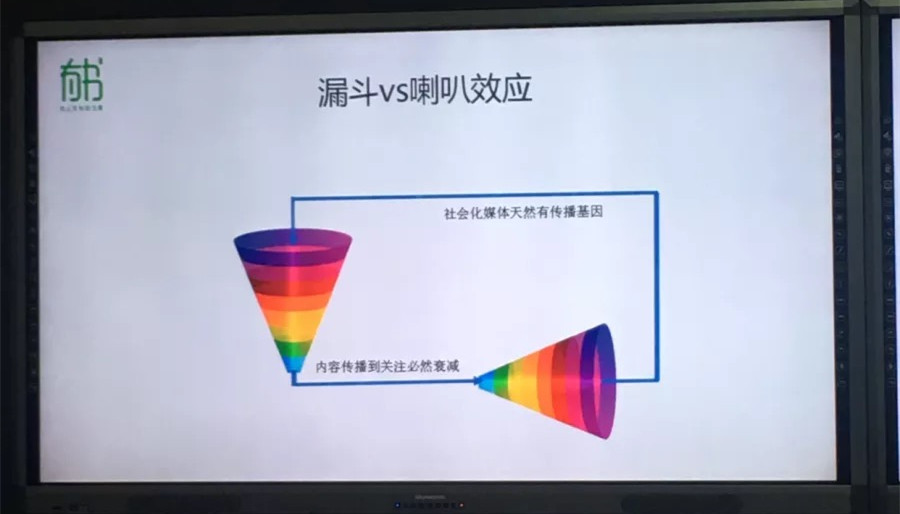所有的社会化媒体都有一个漏斗效应,所谓漏斗效应指的是内容从发布到传播到关注必然是层层衰减的。如何降低漏斗的衰减?微信公众号要塑造整体的产品概念,再加上每日的优质内容输出,加上平衡的内容战略,同时关键文案也是非常重要的,要找到优化传播的出发点。
