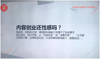 不过在一开始,秦总抛出了一个问题:到底现在内容创业还性感吗?