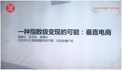 规模化、低毛利、高增长,并且有衍生高增值服务的可能,比如说金融产品,或者类似工业类金融。垂直电商有这种可能性,因为它的体量天生就会比较大一些。
