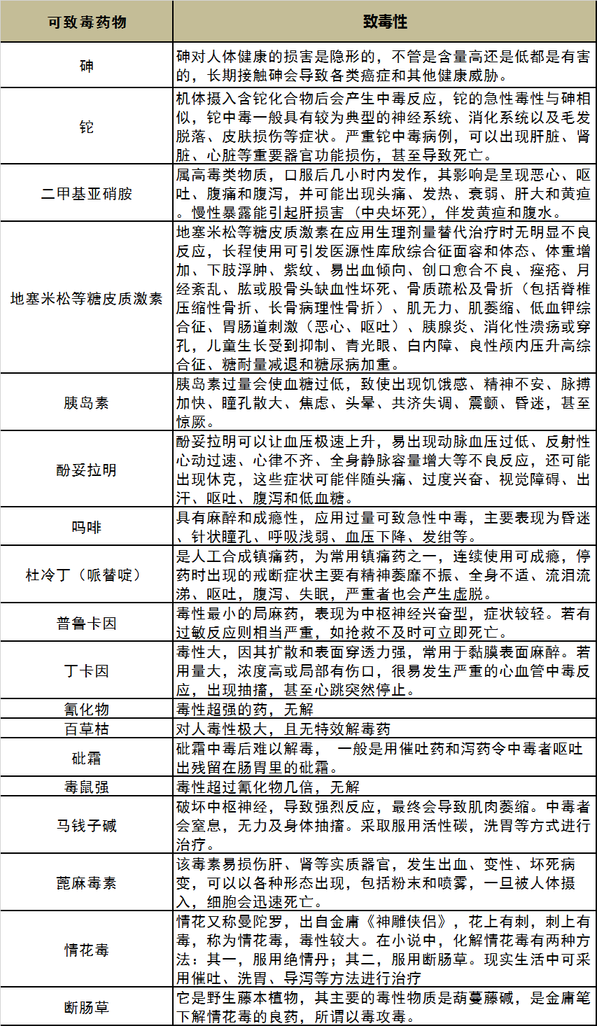 附录:一些常用的有毒药物