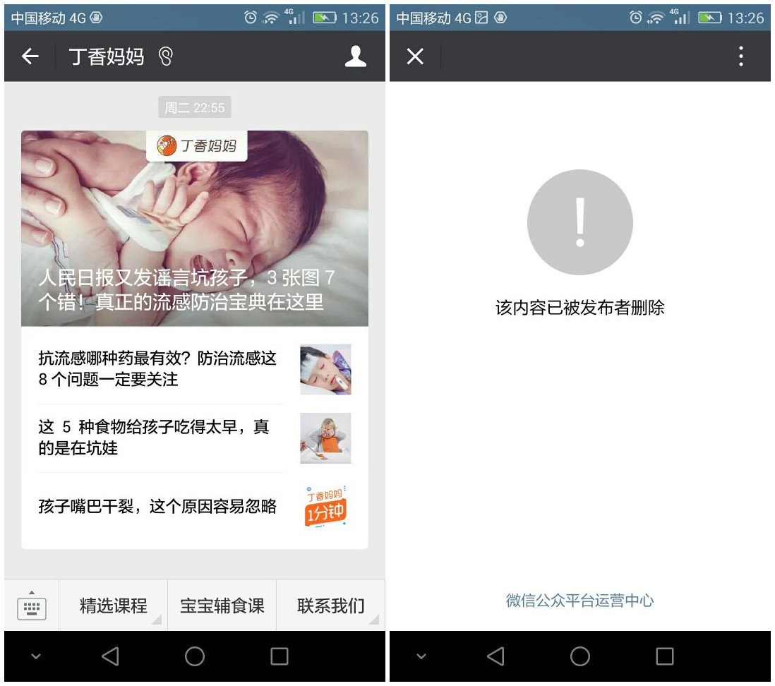 截止目前,丁香妈妈公号的怼文与人民日报的微博博文都已经删除。
