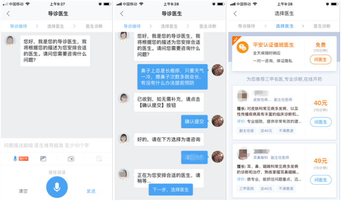 2. 问医生:医生回复及时、认真,特别是智能问诊的引导,体验特别好,同时还可以节约医生的时间,有效精准匹配,大幅提高效率,我想这就是平安好医生战略里重点提到的AI最重要应用场景之一!